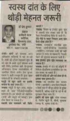 Dr. Prem Kumar Pankaj articles on Dental problems, preventions and treatments are regularly published in Prabhat Khabar, Hindustan, Dainik Bhaskar & Dainik Jagran.